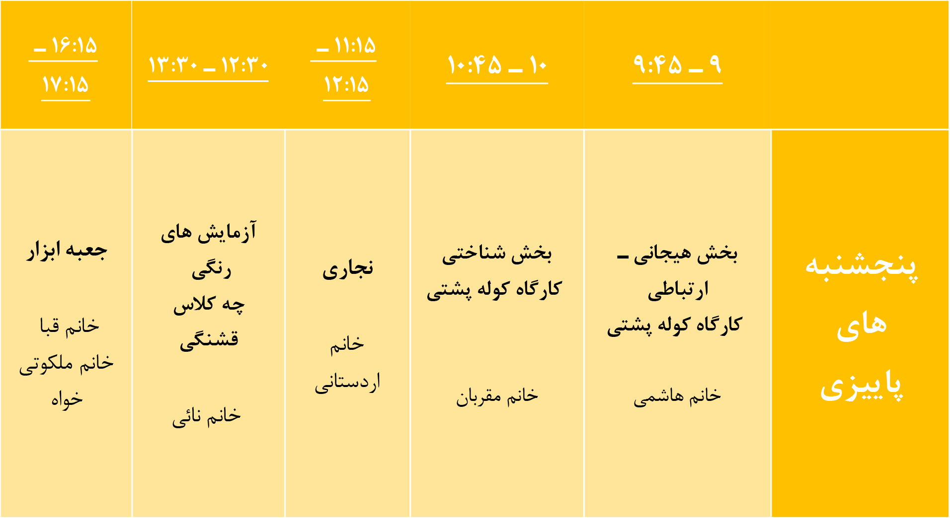 در جهت فراهم آوردن محيط غنى، فرصت تجربه هاى مفيد و افزايش مهارت فرزندانمان كلاسهاى متنوعى را برنامه ريزى كرديم: